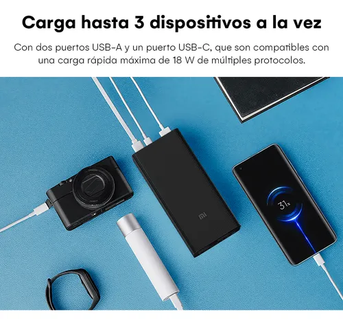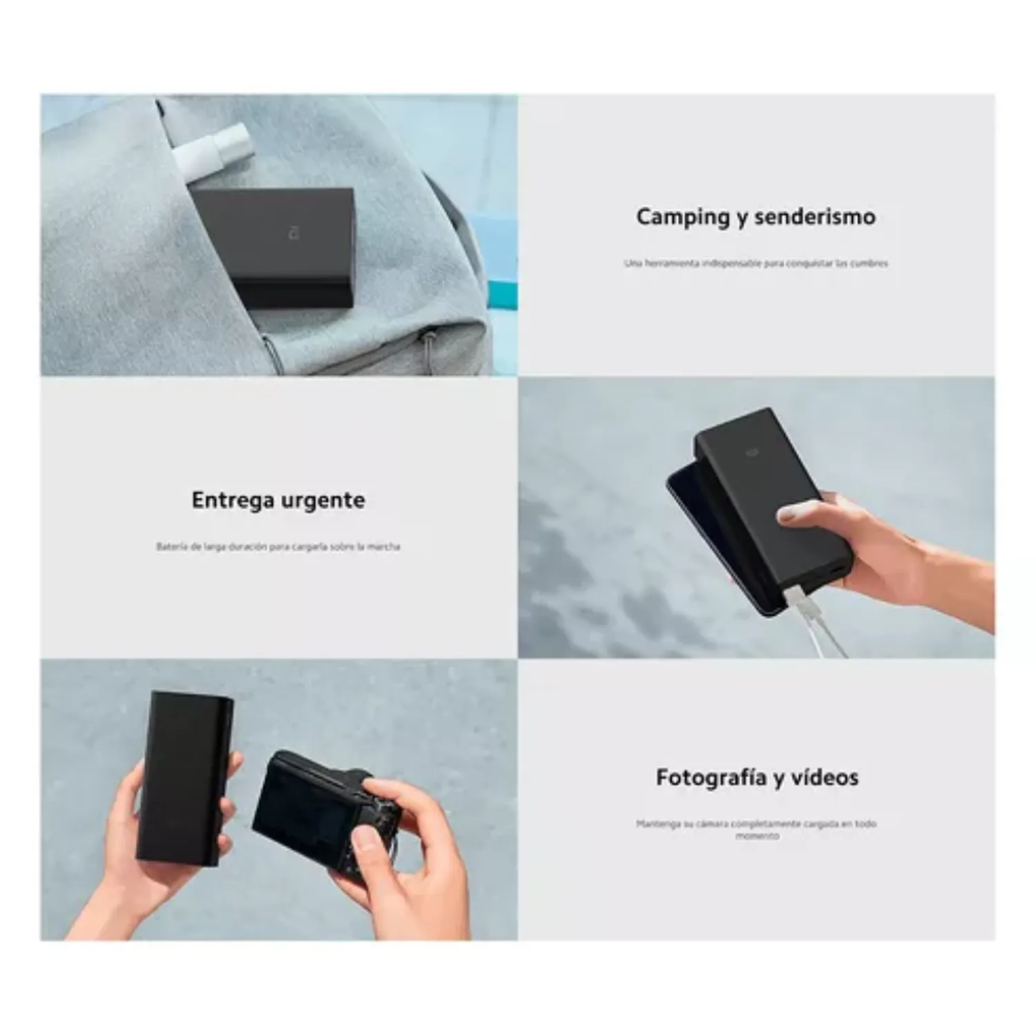 El Xiaomi Power Bank 3 no incluye cable, lo que te da la libertad de usar el cable que prefieras y que mejor se adapte a tus dispositivos. Su tamaño compacto y ligero lo convierte en el accesorio perfecto para llevar en tu mochila o bolso, asegurando que la energía esté siempre a tu alcance. Con este powerbank, la energía es más que un accesorio, es una necesidad cubierta con estilo y eficiencia.