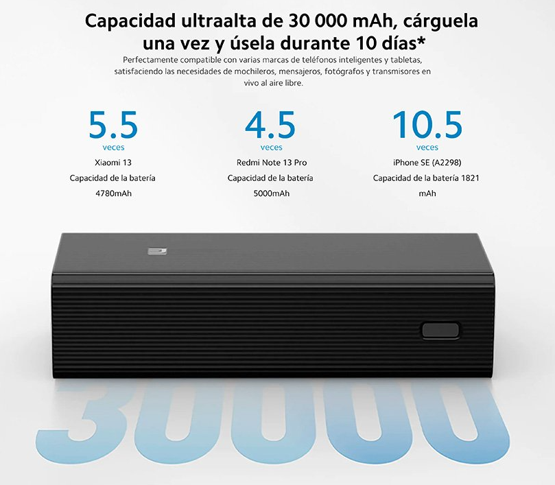 - Potencia: 111 Wh 3.7V 30000 mAh